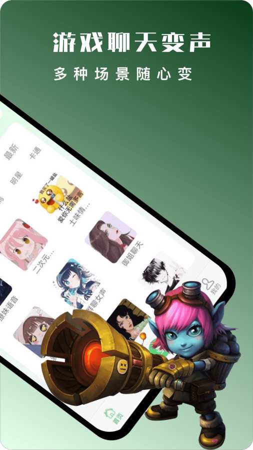 变声器聊天变声、游戏变声、语音通话等多场景的语音包 王者荣耀、吃鸡游戏、和平精英开黑聊天专用语音包 QQ、抖音等社交软件中使用的变声语音包。