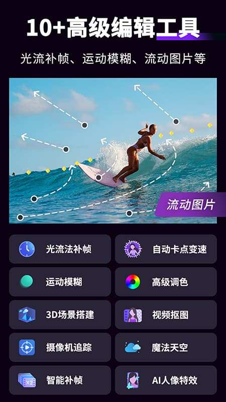 轻松剪辑创意漫剪,安卓端的AMV Video Star们的伙伴!Motion Ninja(原动效忍者)提供关键帧动画设计和3D特效插件库,让你在手机也可制作专业的视频特效。