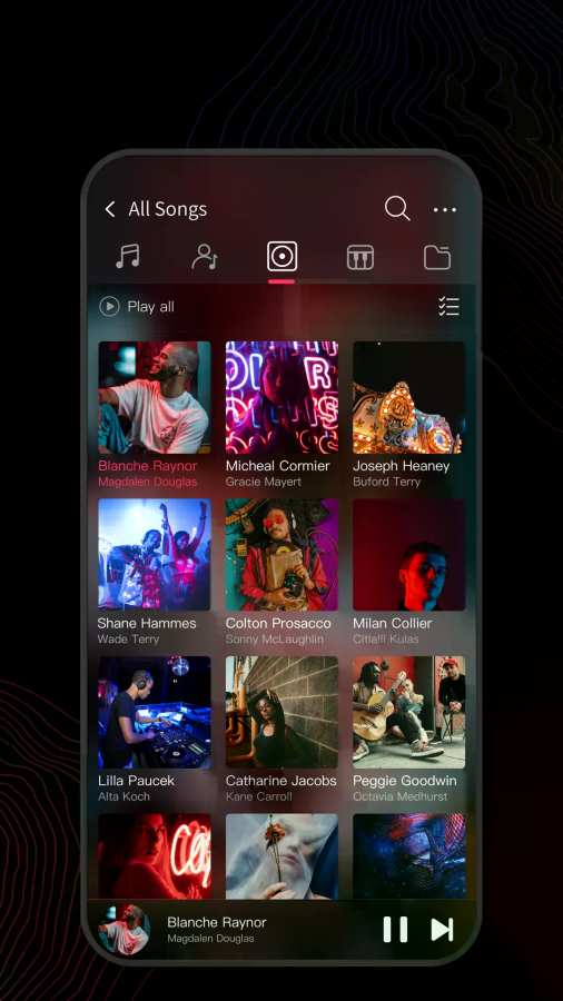 5、支持全部歌曲,专辑(按音轨号排序),艺术家,风格,文件夹,自定义列表等分类播放;