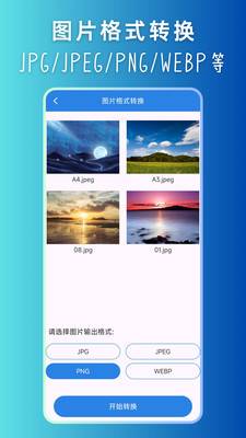 图片格式转换:支持JPG/JPEG/PNG/WEBP等格式;