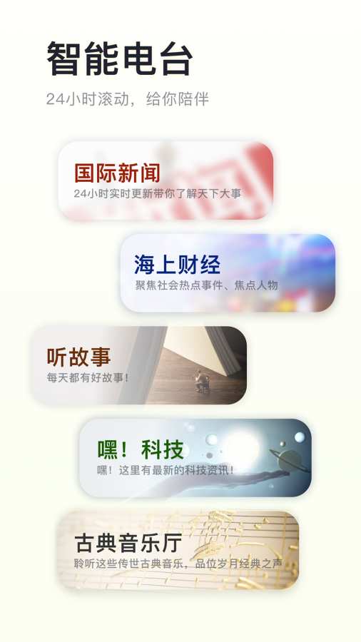 【个性选听】滑动即达偏好,偶遇新鲜声音,每次打开都有惊喜。