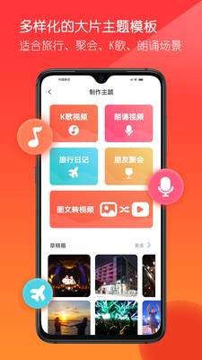 让精彩的视频把歌声衬托得更加美妙,可以用自己演唱的歌或是朋友家人等等喜欢的歌曲,制作出古风,现代等各种不同风格的MV大片,分享给朋友们,享受当歌星和导演的快乐!