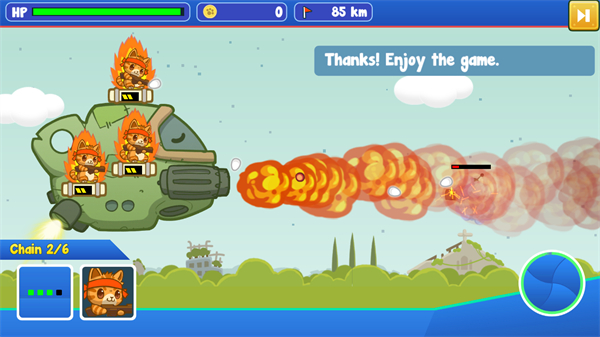 猫咪角色造型软萌可爱,不同猫咪有着独特的外形与动作特效,飞船与敌人的设计也充满卡通趣味,让紧张的射击闯关也变得轻松治愈。