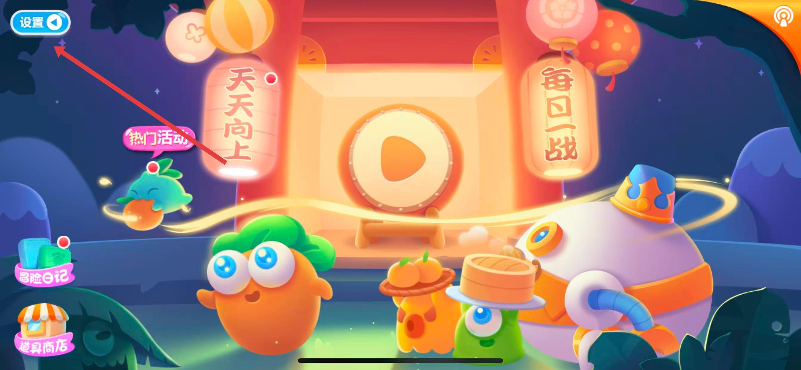 1、进入保卫萝卜2游戏主界面,点击如图中箭头所指的播放按钮,先进入到游戏关卡选择等相关界面。