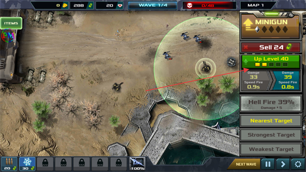 4、升级防御塔如MINIGUN,提升其火力和攻速,增强防御能力,应对后续波次敌人。