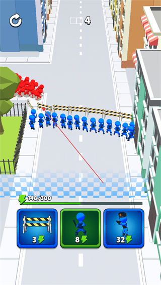 3、操控蓝色队伍与红色敌人战斗,消耗敌方数量,同时补充己方单位。