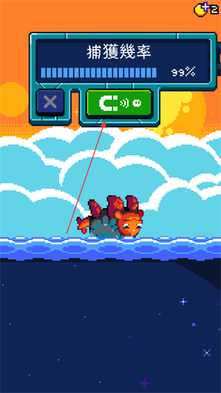 3、遇到可捕获的生物如火焰龟,点击绿色按钮,以高捕获率尝试捕获。