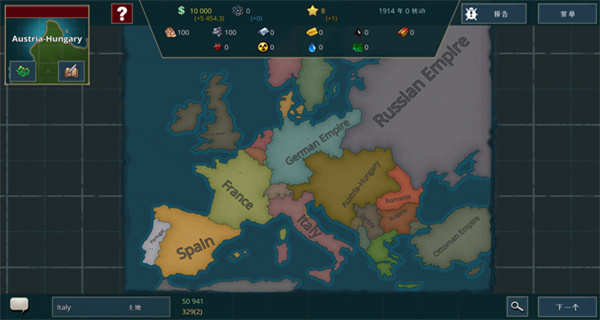 玩家需从军事、技术、文化、政治四大维度推进国家进步,比如研发军事武器增强战力、提升技术解锁新设施、发展文化凝聚国民、多维度协同助力领土征服与世界称霸。