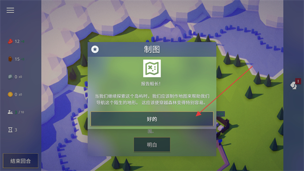 2、遇到制图等提示时,点击好的接受,制作地图来帮助探索新地形。