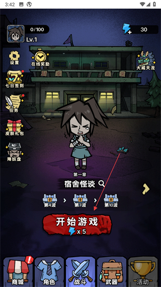 1、打开诡事怪谈游戏,点击开始游戏按钮,进入战斗准备阶段。