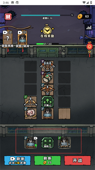 3、布置好道具或者合并升级后,即可点击开战按钮,进入战斗阶段。