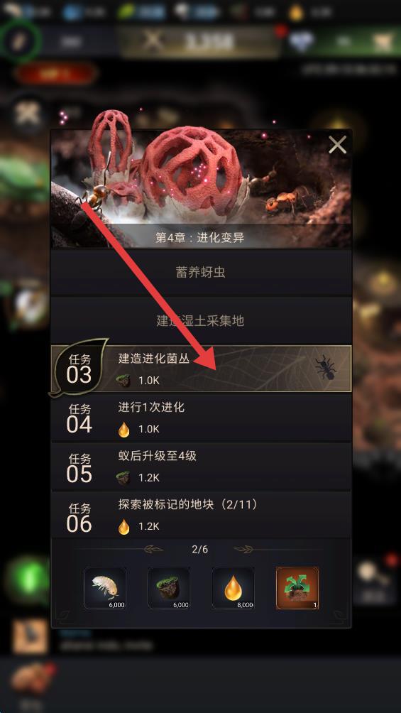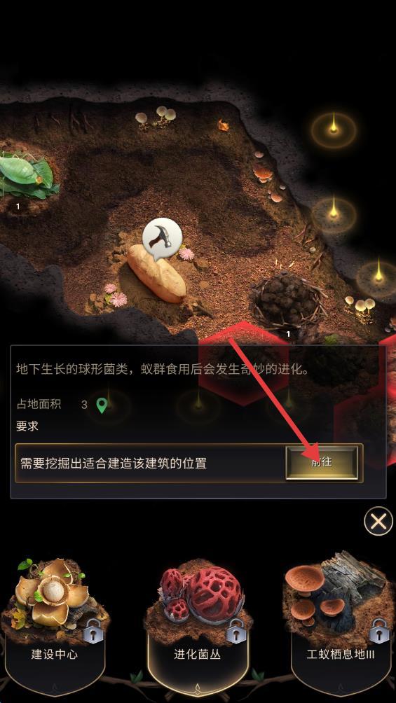 1.储存大量粮食作为你的后勤保障,通过训练升级工蚁的战斗能力。