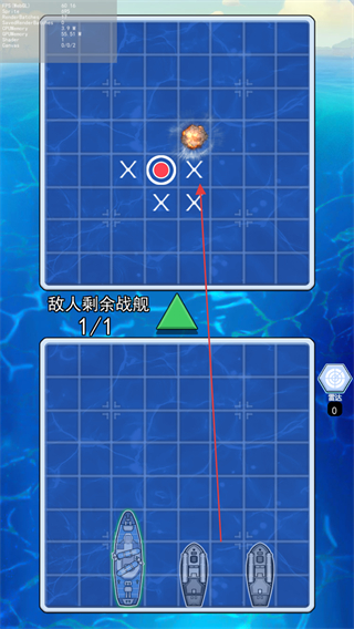 3、攻击敌方战舰的所有占格,将其击沉。