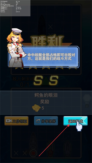 4、击沉敌方所有战舰后获得胜利,点击返回游戏继续挑战新对局。