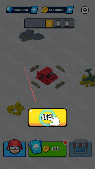 1、点击战斗按钮进入关卡,准备部署红色小兵作战。
