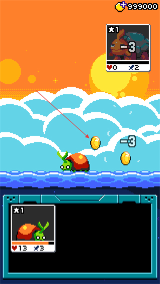 2、遭遇火焰龟等敌人,发起攻击,消耗其血量。