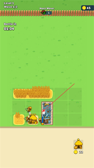 2、花费金币建造防御建筑如城堡,同时种植小麦获取资源。