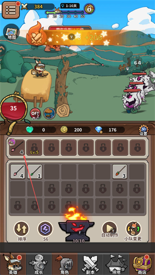 2、核心放置玩法解放双手,弓箭自动制作、合成与战斗全程无需手动干预,离线也能积累资源提升战力,适配碎片化娱乐场景。