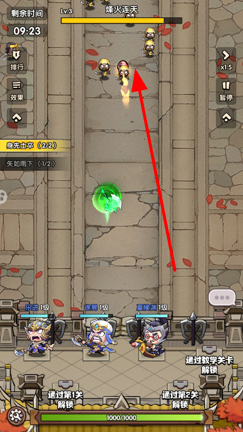 2、城防阵地布置:根据敌军进攻路线,合理仔细思考布置防御塔与武将位置,利用地形优势构建交叉火力网,最大限度发挥武将羁绊效果。