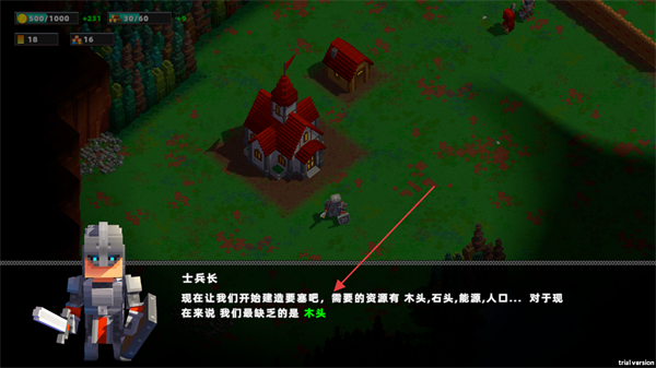 2、根据士兵长提示,优先收集资源木头,推进城堡建造进度。