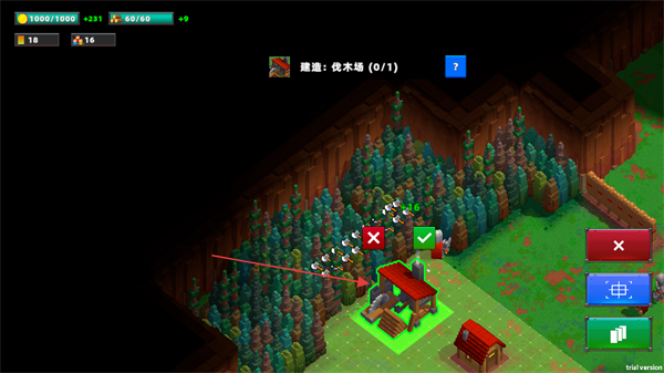 4、在指定位置建造伐木场,完成基础建筑布置,推进城堡发展流程。