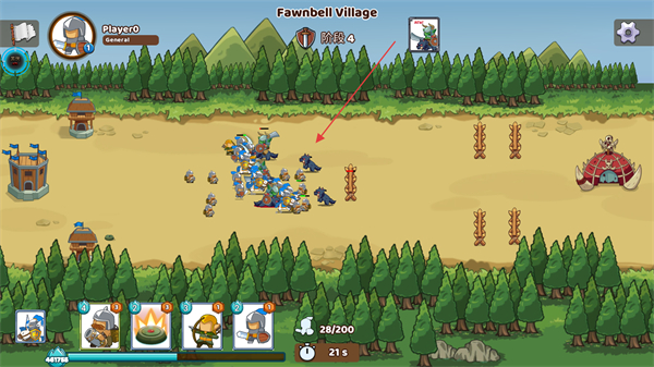 2、战斗中灵活调整士兵派遣节奏,根据战场局势补充不同类型的士兵,形成优势兵力。