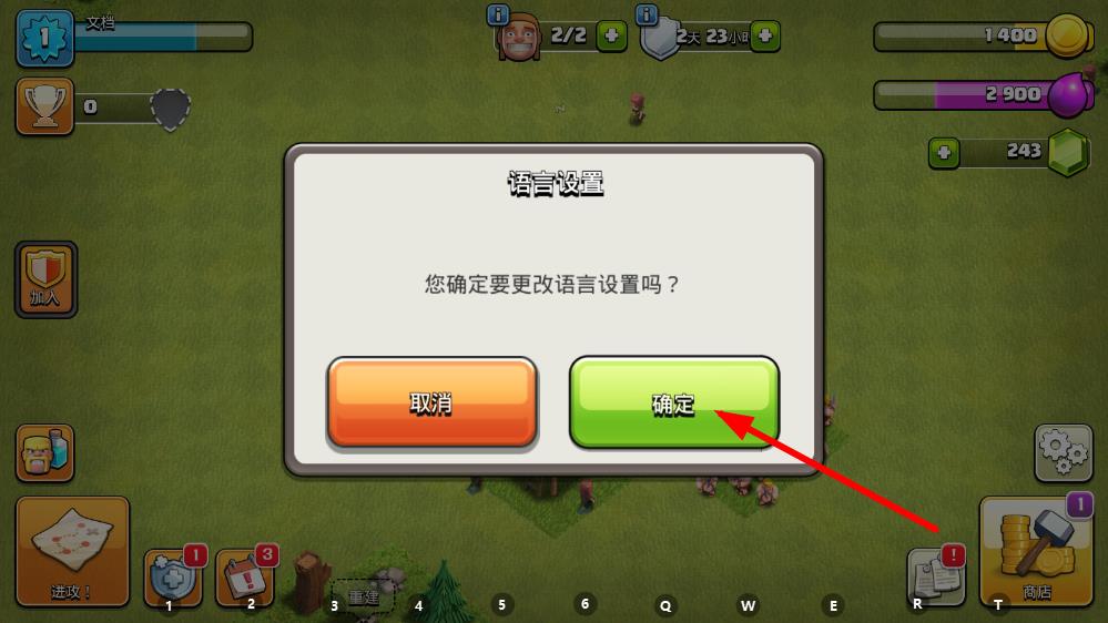 4、在弹出的语言设置确认框中,点击确定按钮,即可将游戏切换为中文版。