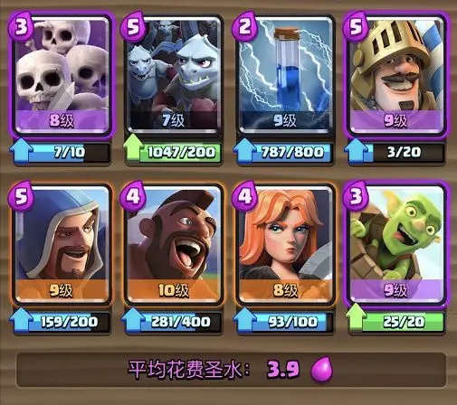 这是最接平民的组合,毕竟里面每一张卡都比较容易获得,在玩法上,可以使用野猪骑士配合哥布林打出消耗的效果,然后在另外一边放皇子来警醒冲锋,如果对方优先攻击,那么就可以利用亡灵军团搭配着火法以及女武神打出恐怖的伤害。