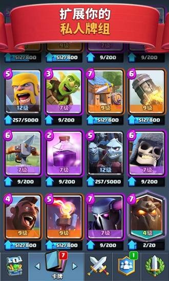 -- 收集皇室战争家族成员和您熟悉的《部落冲突》军队,法术和防御建筑等卡牌,打造和升级您的卡组