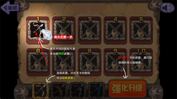 1、点击带有“关卡模式”的按钮,进入关卡选择界面。