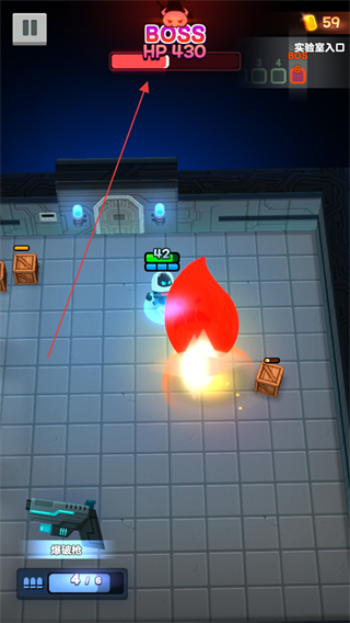 4、消灭BOSS后,点击继续回到大厅,完成关卡挑战,可继续探索新的实验室区域。