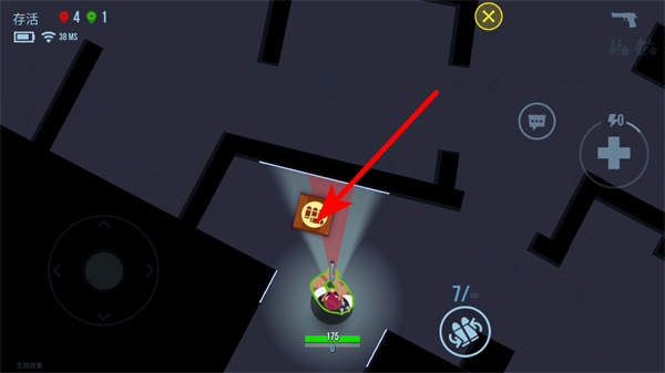 2、通过左侧虚拟摇杆移动角色,利用视野寻找敌人,瞄准后进行射击。