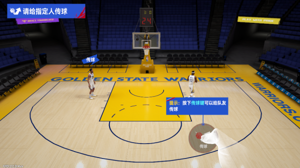 3、点击传球按键可以将手中的篮球传给自己的队友,让队友协助自己进球;