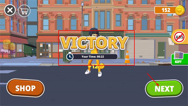 4、战斗胜利后出现VICTORY界面,点击绿色NEXT按钮,继续挑战下一个关卡。