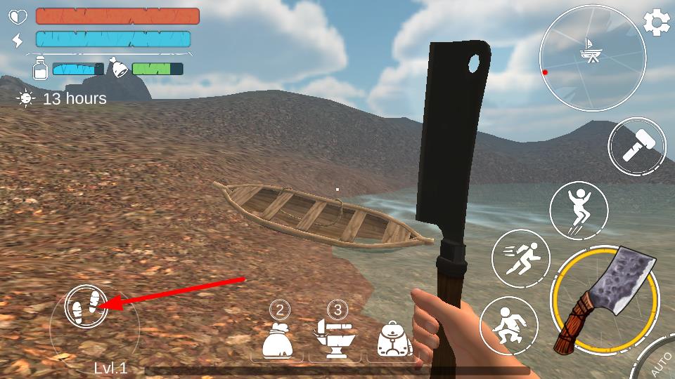 1、点击左侧脚印按键,控制角色移动,荒野场景中探索资源、寻找区域,这是角色移动操作。