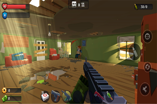 采用经典像素画风,场景与角色设计简洁鲜明,射击手感流畅,僵尸进攻的压迫感与武器射击的爽感形成强烈对比,复古又刺激。