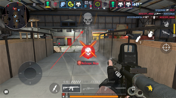 2、瞄准敌方角色,利用枪械发起攻击,注意躲避敌人的火力。