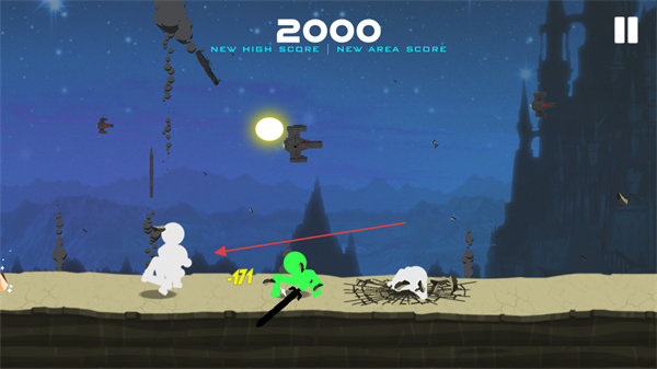 2、继续攻击新增的白色敌人,造成-91伤害,积累分数至2000,保持战斗节奏。