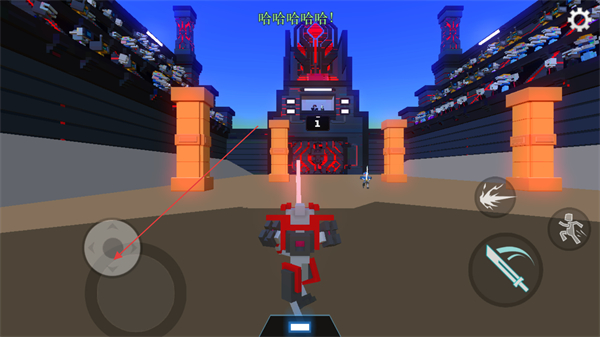 1、操控红灰机器人进入格斗场地,准备迎战敌方机器人。