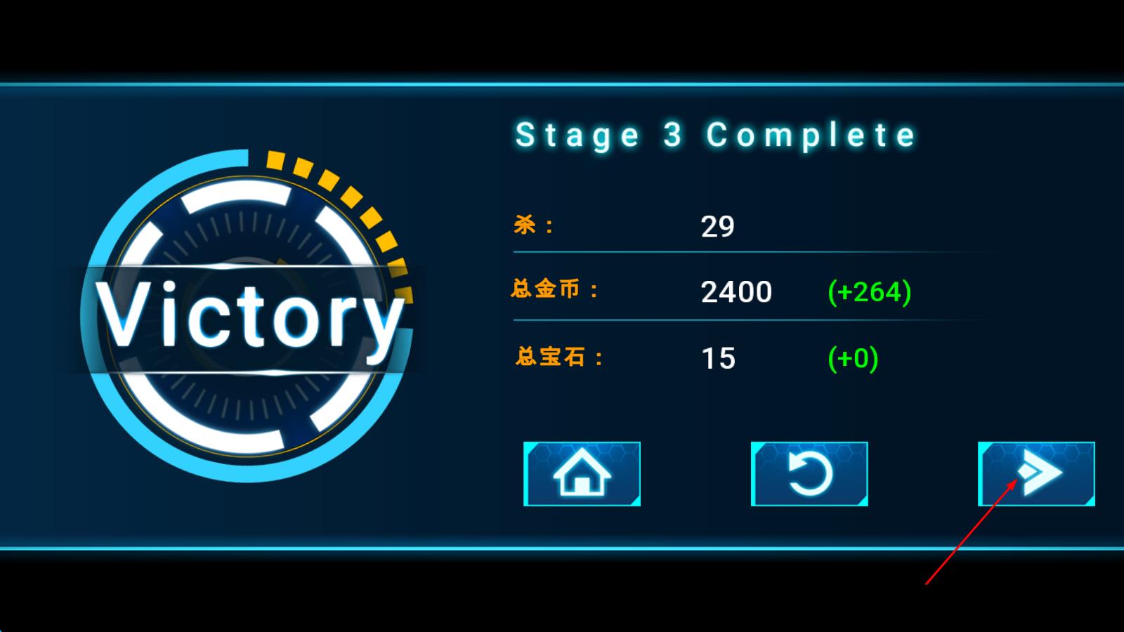 3、当成功击败关卡BOSS完成闯关,用获得的奖励购买强力武器或升级现有装备与技能,为后续更难关卡的挑战做好战力准备。