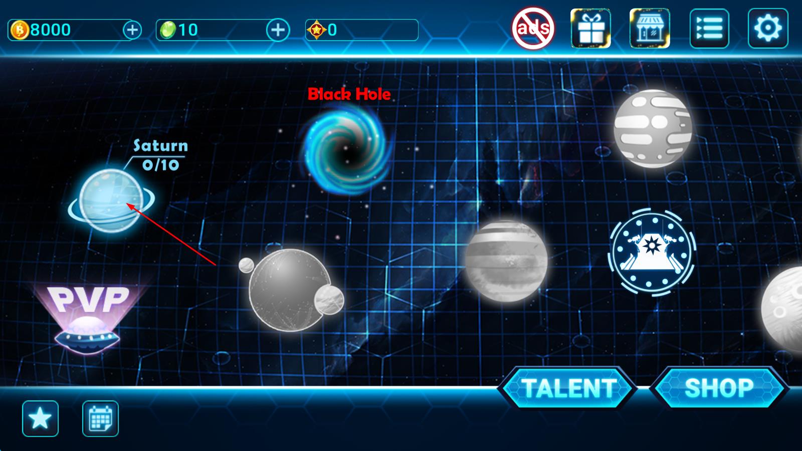 1、进入游戏后,从不同能力的火柴人角色中选择其一,挑选初始武器熟悉基础战斗操作,随后开启外太空的第一关冒险挑战。