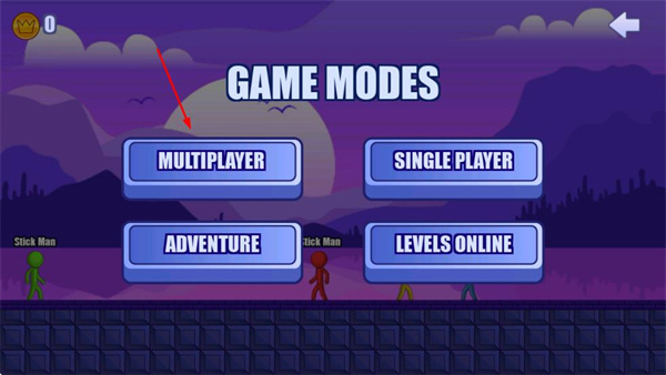 2、在游戏模式选择页面,找到MULTIPLAYER按钮并点击,进入多人游戏页面。