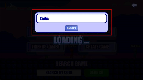 3、在多人游戏页面,找到SEARCHBYCODE输入框并点击,触发代码输入弹窗。