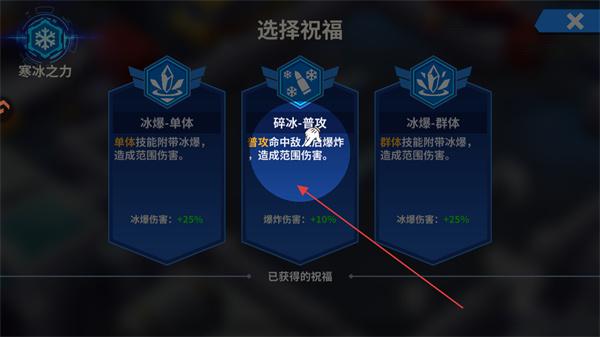 2、选择碎冰-普攻祝福,普攻命中敌人后爆炸,造成范围伤害。