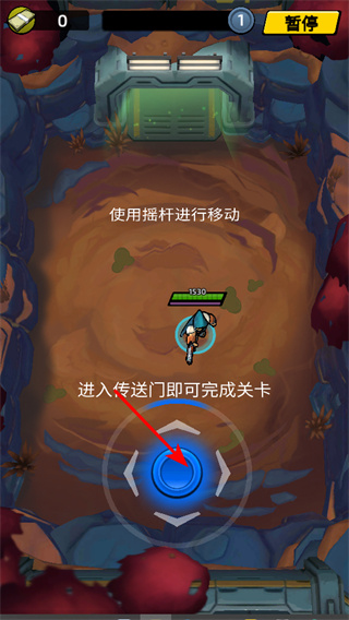 4、使用摇杆操控角色移动,在击败所有敌人、传送门出现后,移动角色进入传送门即可完成关卡。