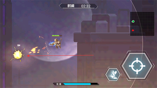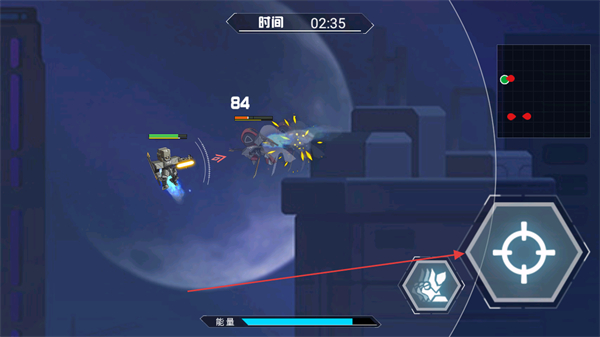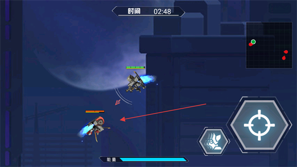 1、操控机甲移动,瞄准敌方机甲,准备发起攻击,消耗敌方血量。