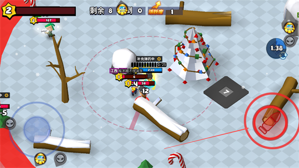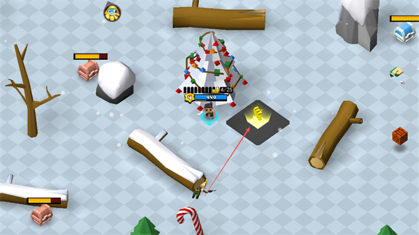 1、在雪地场景中,靠近发光区域收集金币,积累资源,提升自身战力。