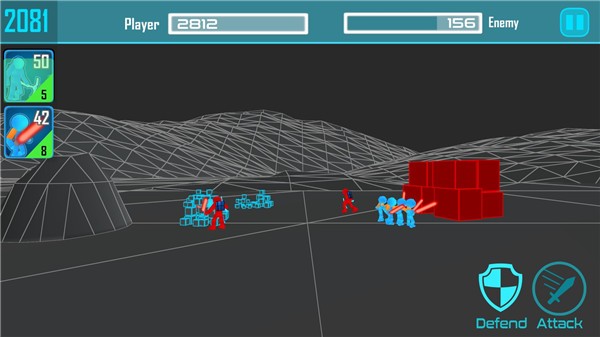 3、兵种搭配策略核心:设计多种特性各异的火柴人战士兵种,不同兵种在攻击方式、射程、防御能力上形成差异,需根据关卡需求合理组合,构建战斗体系。