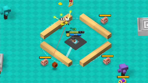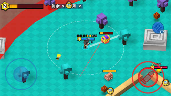 1、攻击紫色宝箱获取道具,提升战力,同时瞄准敌方玩家,发起进攻。