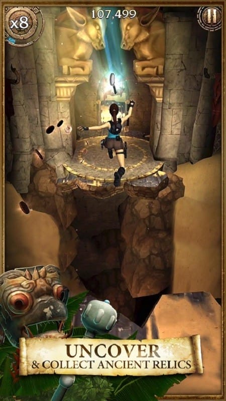 《劳拉:遗迹逃亡 Lara Croft: Relic Run》是开发商 Crystal Dynamics 工作室和日本游戏大厂 SE 联合推出的一款跑酷新作,游戏的画面十分气派。在游戏的部分场景和主角的一些动作里,我们好像都看到了一些《神庙逃亡》的影子,但在这样的基础上,更吸引我们的眼球的是其它丰富的要素,包括多样特技动作,摩托车等坐骑,令人震撼的场景,史诗版 BOSS 战等,都将出现在本作中。